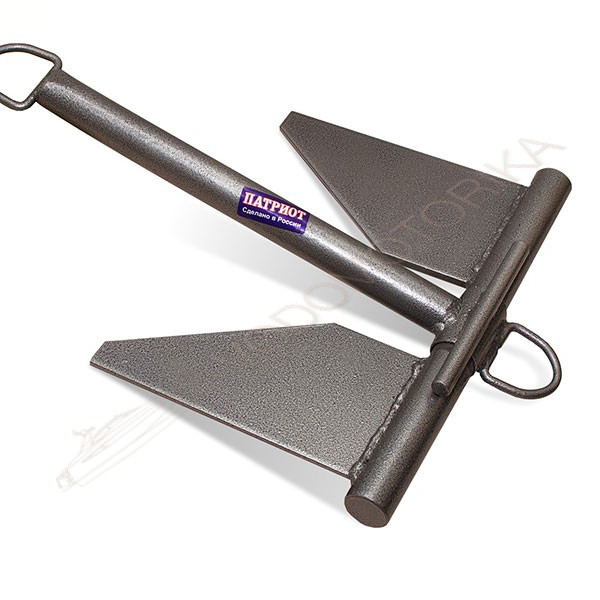 Сталь окрашена антикоррозийной краской, края притуплены. Устроен по шарнирному принципу, но имеет вытянутые вдоль веретена длинные плоские лапы, тонкое шарнирное соединение со штоком на оси вращения и два зацепных кольца, позволяющие высвободить якорь из зацепа. Имеет отличную держащую способность на песчаных грунтах и на гальке.